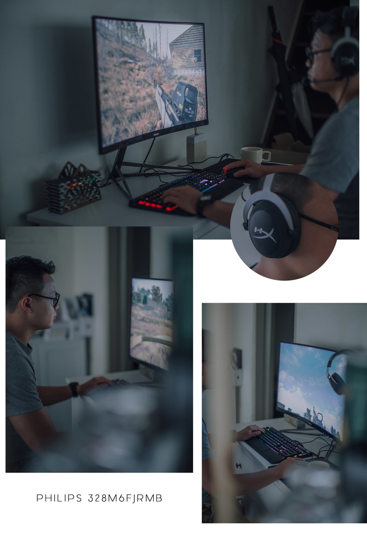 Mr. D 是我們團隊的工程師這台 飛利浦 PHILIPS 328M6FJRMB 曲面螢幕 跟 HYPERX 電競系列的鍵盤滑鼠 一到公司的時候他超興奮馬上組裝起來玩PUBG XD