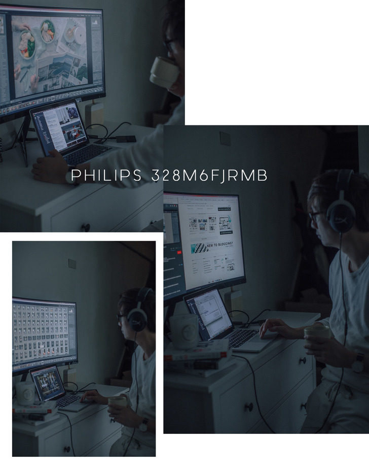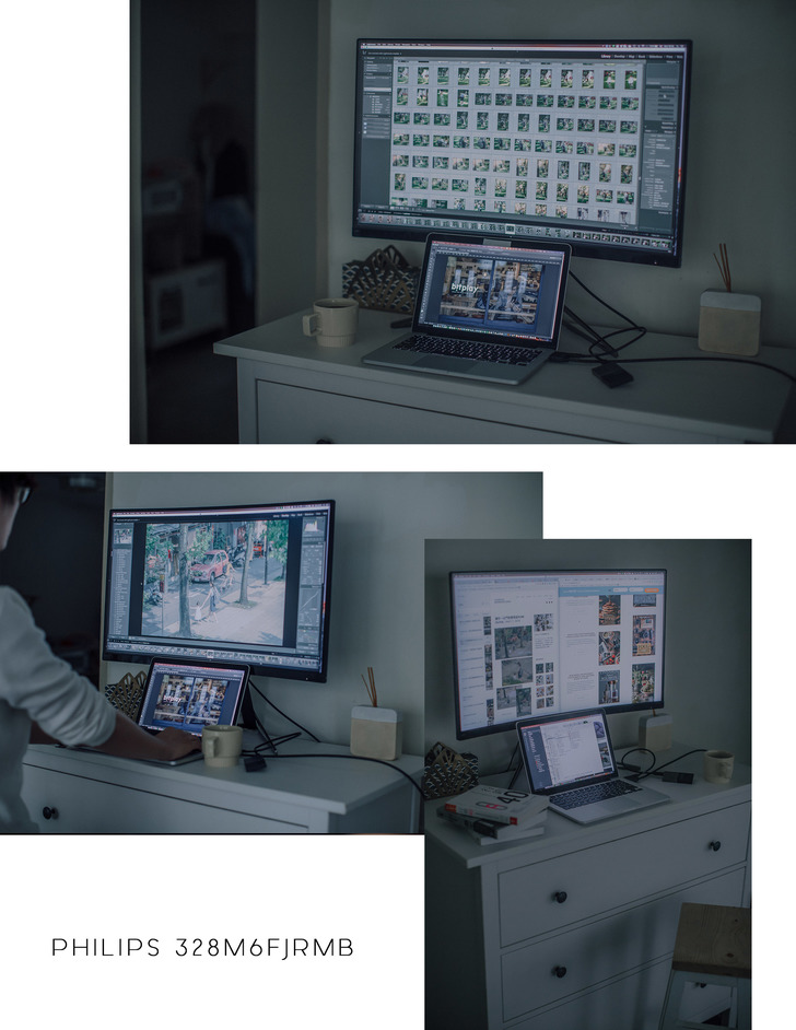飛利浦 PHILIPS 328M6FJRMB 曲面螢幕 +Macbook Pro 雙螢幕對我來說修圖真的好好用!本來是想買28" 現在覺得32"剛剛好 XD