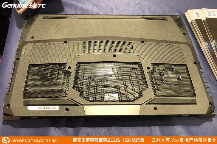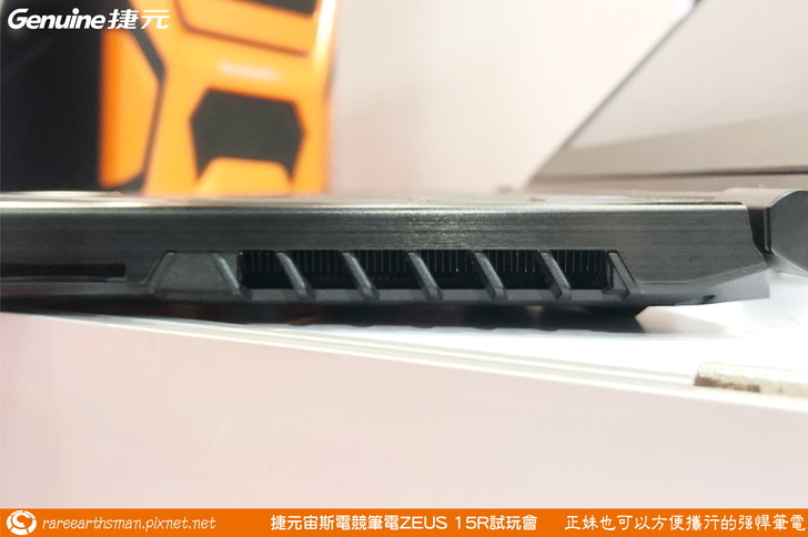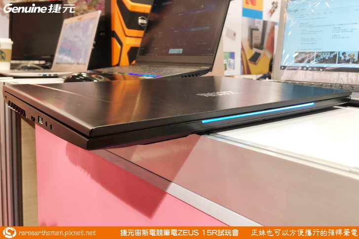 ▲首先ZEUS 15R螢幕的背面(也就是所謂的A面)是採用了髮絲處理,使用的材料是鎂鋁合金,外觀感覺就很有質感,而且重量輕,而金屬材質也有助於散熱,而背面中央放的是ZEUS Logo。