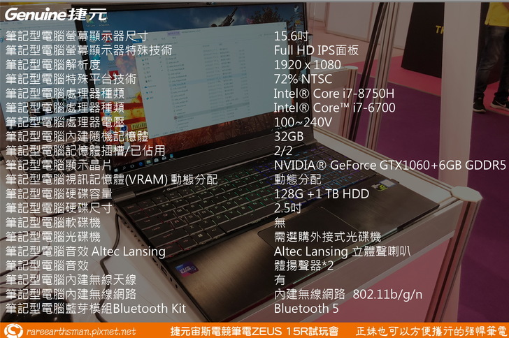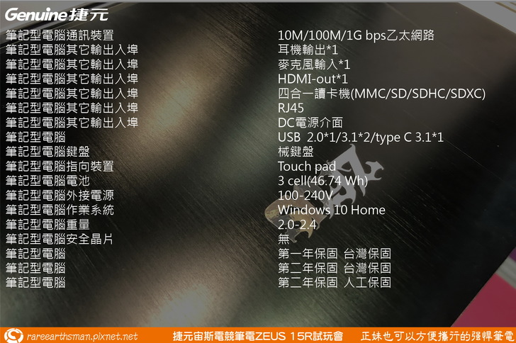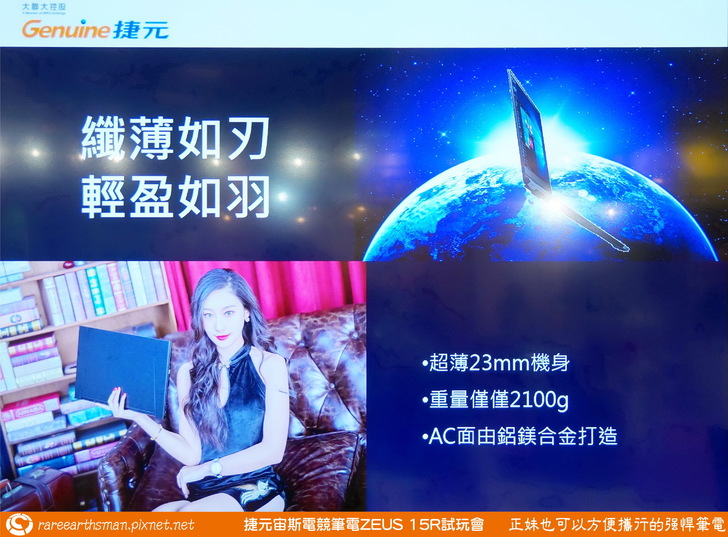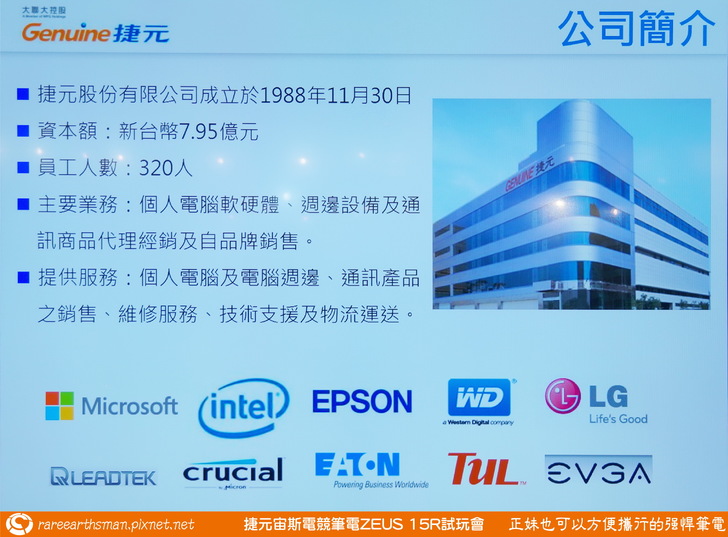 這次試玩會的廠商,捷元電腦是台灣的資訊通訊通路的代理商,除了代理相關資訊產品之外,也有一些自家的產品,這次的主角ZEUS 15R電競筆電是捷元最新的產品,規格強悍,但是體積與重量均可以有效的被限制,對於一些女性的遊戲玩家來說,好用好帶的筆電設備應該是個滿不錯的選擇;就讓我來簡單的介紹一下這台電競筆電吧。
