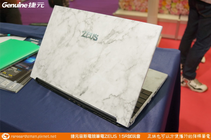 ▲這是捷元ZEUS 15R的預購活動之一的筆電包膜,雖然外殼使用的是黑色金屬髮絲,但是黑鴉鴉的顏色並不是所有人都會喜歡,特別是這次強打的女性族群,透過筆電包膜可以讓外殼有更多種不一樣的形式出現,圖中的是展示的類大理石包膜。