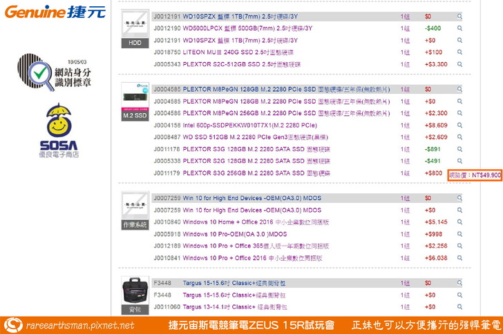 ▲因為筆記型電腦內部零件大都客製化,就算標準型的配件也會因為機殼難以拆卸,乾脆就不開放使用者自己拆,畢竟自行拆解可能還有損壞報修保固的問題,一般的筆記型電腦廠商大都只設定好幾個固定的規格讓消費者來選擇,自然不能挑A的01配上B的02,再加上C的03這樣;而捷元的BTO就是在這個問題的基礎上所誕生的ㄧ種行銷方式,只要官網上該產品所列出的設備裝都可以加裝,使用者可以針對各項零配件選擇自己想要的配備。