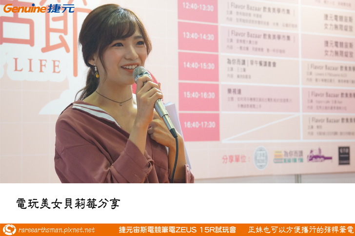 ▲這次的試玩會也邀請了電玩界的實況主,美少女貝莉莓,來分享ㄧ下電競產業中的ㄧ些資訊,當然也有分享使用過了ZEUS 15R這款電競筆電的感受。