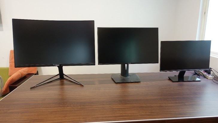 左至右分別為: PHILIPS328M6FJRMB(32”)、ASUS PG279(27”)、BENQ EW2440(24”)