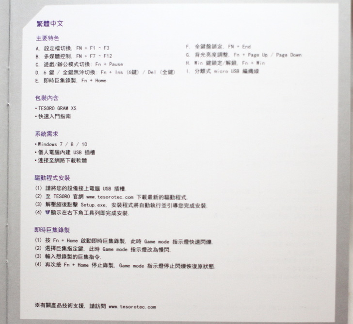 ▼ 內容物:GRAM XS(G12)剋龍劍超薄型機械鍵盤 本體、Micro USB編織線、產品說明書、產品保固卡。