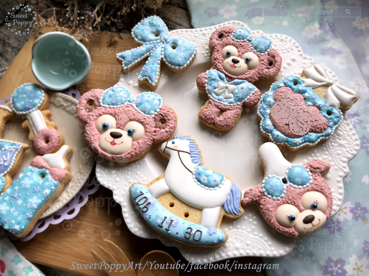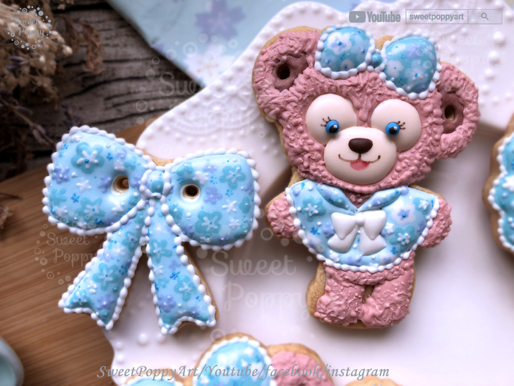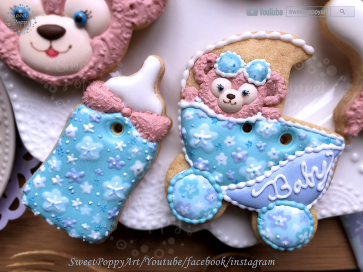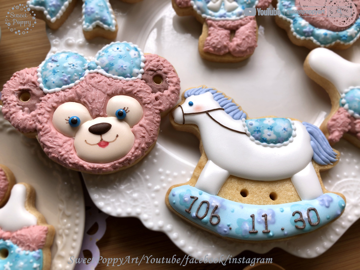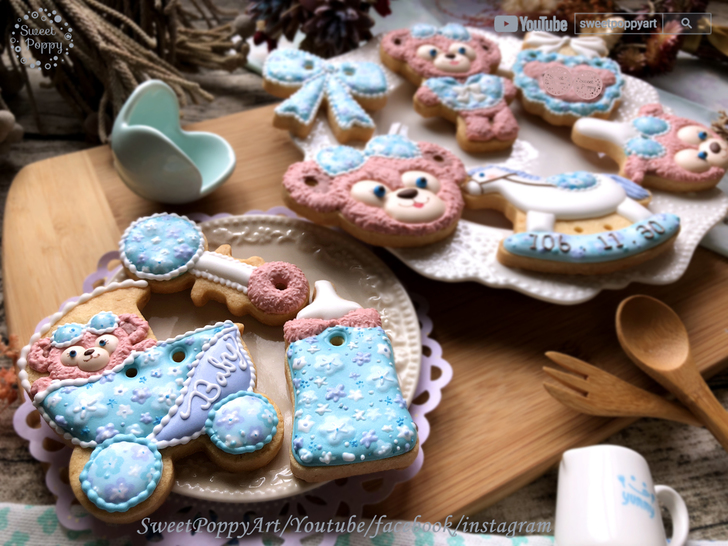 學習如何在餅乾上面畫 粉藍花花雪莉玫 Disney ShellieMay - Baby Blue | SweetPoppyArt 甜胖皮藝術糖霜餅乾 | #33 (原創影片)(6P+影)