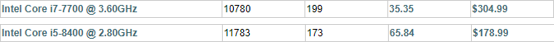 第 8 代 i5-8400 的分數 11783,第 7 代 i7-7700 的分數 10780,