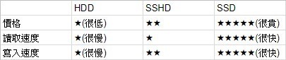 6000mb/s,但是記憶體一條很貴一條16GB的記憶體,大概就可以買兩條32GB的Intel Optane Memory,而一般的 HDD 讀取速度約略在 100mb/s ,再來是 SSD 的硬碟,好壞的硬碟速度也差很多,我看過的 SSD 速度 150~1800mb/s 都有,150mb/s 的速度真的很扯,根本和傳統速度差不多!但大部分 SSD 的速度落在 450mb/s 左右;由於當初的 SSD 都很貴,市面上又出現 SSHD 的混合碟,雖然說是想要享受 SSD 的速度卻又要有便宜且大空間的優勢,但實際上並沒有這麼美好。