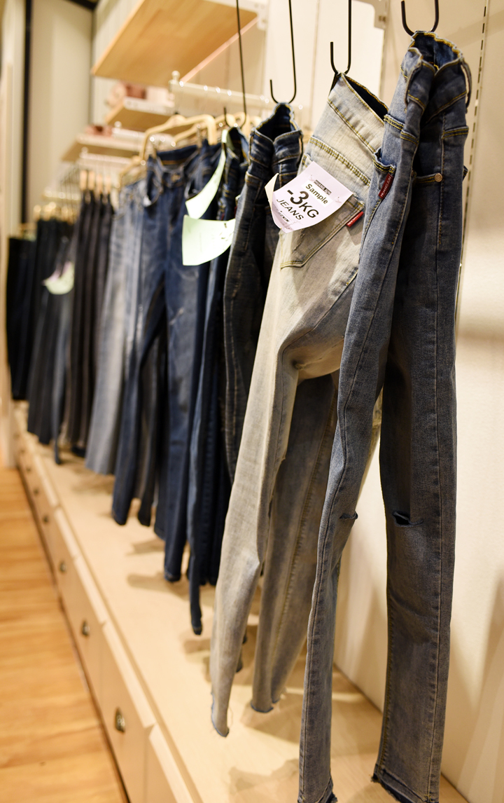 ▲ H&J 的顯瘦牛使用超有型彈力丹寧牛仔褲,上頭都沒有皮標看起來應該為了讓穿著更輕薄舒適,外型更簡約素雅所作的設計,所以適合搭配各種上衣。