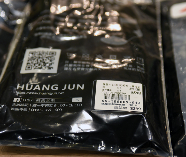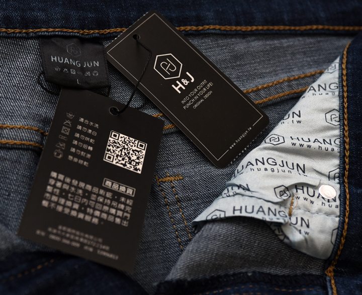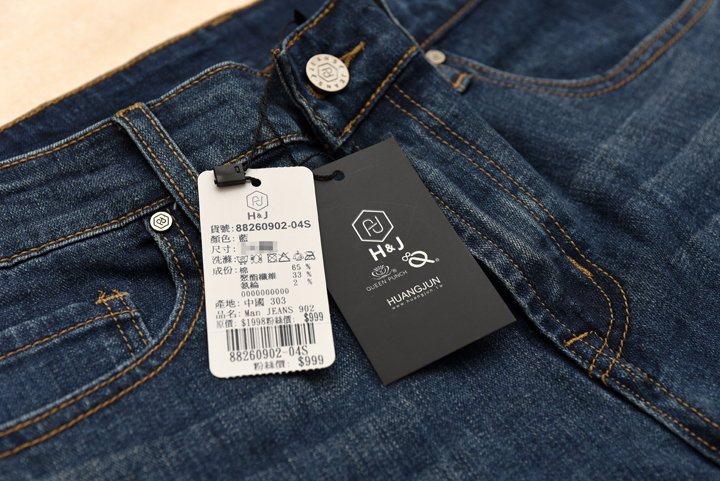 ▲ 洗標地方可以看到 H&J 的全名,稱『HUANG JUN』,就連口袋還印上品牌LOGO,看似追求完美的生產方式來彰顯『品牌的價值』。