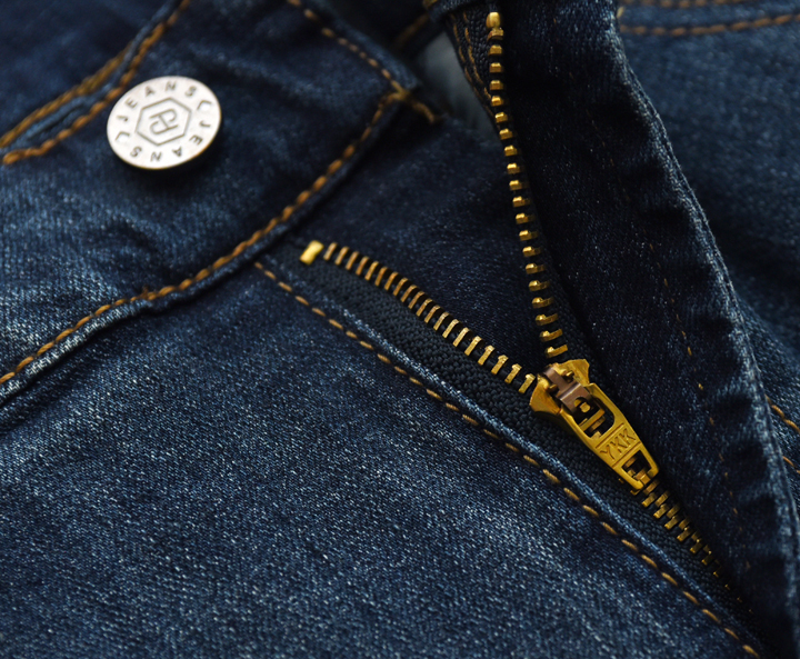 ▲ 一般買牛的話,亮點大都會放在主扣、鉚釘、拉鏈、縫線等材質,而便宜牛仔褲的鈕扣和鉚釘往往使用劣質的鋁製品,但這件主扣和鉚釘使用高成本銅質拉鏈和鉚釘,以及紮實又工整的鎖鏈車法。