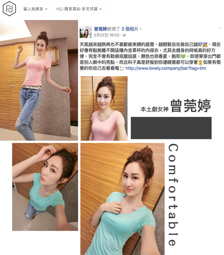 ▲ 每次看曾莞婷穿著素色背心,被一雙豐滿『胸器』撐得超緊繃,美麗的胸型畢露,讓粉絲們差點暴動啦!接著臉書立刻有一堆正妹與粉絲再狂問品牌與型號,而且想買來送女友的男性也蠻多的!