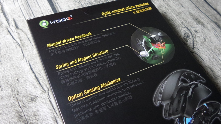 滑鼠的心臟就是左右鍵,其微動作就是核心元件,現在不論哪種滑鼠(光學、雷射、軌跡球)要用到故障不能用真的很難,除非是摔到或是線材拉扯到,不然內部的微動開關隨隨便便都可以百萬次,若採用更高檔的日本歐姆龍,更達1000萬次的壽命,要正常玩到壞,還不是容易辦到的事。今日體驗的i-Rocks M35 RGB是一款光磁微動滑鼠,內部採用不氧化的光磁微動開關,無金屬接點耗損與訊號雙擊問題,並搭配永久磁性及鈕簧驅動結構設計,壽命更長,但...究竟使用者真的會用到5000萬次的點擊次數?不管是不是噱頭還是真有其性能,滑鼠的微動開關已經直接決定了滑鼠手感和按鍵壽命,光磁微動使用起來的奇檬子就是一個爽字,而由於是光學偵測技術,所以感測速度快而精準,段落明確。外型除了美型外更有絕佳手感,是玩家征戰沙場必勝的殺敵利器。不過也有值得建議之處那就是沒有設循環計呼吸燈與關閉功能,也希望i-Rocks能推出自家配合的軟體,包含DPI的調整或是個功能鍵的自訂,如此一來就更有其價值了。由於小編沒有細部拆解,原因有二,一是保固問題,二是會破壞到鼠腳的部分,以上開箱就為大家介紹到這,喜歡可以幫忙分享並按讚唷~