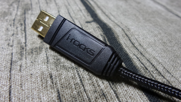 【▼】首先來看USB連接頭的部分,鍍金處理,塑膠殼上刻印有i-rocks的Logo,尼龍繩所編織的線材,耐拉又抗扯。