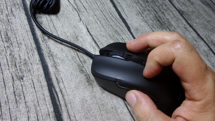 【▼】i-Rocks M35整體採用單層磨砂處理,沾黏指紋的程度比起鏡面好上很多,但對於汗漬還是不行,滑鼠左右按鍵為一體成形設計,整體手感細膩、操控順手;滑鼠中間是DPI切換鍵,預設為1600 dpi,按 "+" 依序可提升dpi至3000、4000、5000等,按 "-"則降至800 dpi,對於即時戰略的遊戲地圖,在FHD解析度下速攻可調高,近戰可調低,沒有空鍵程的情況,實在好用~