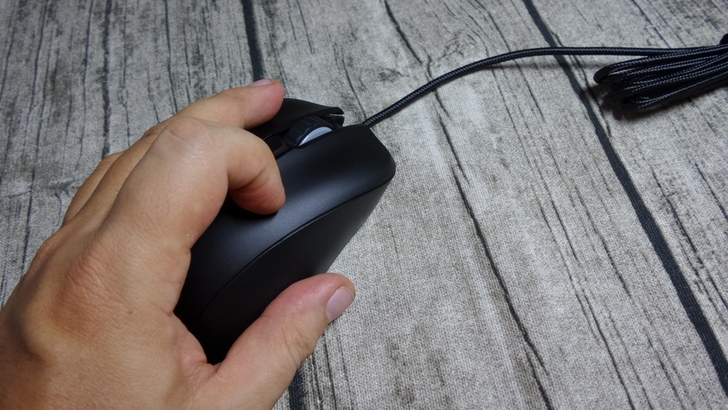 【▼】光磁微動的M35採用了右手人體工學設計,實握起來非常飽滿,無論是抓握還是趴握,都很舒適。