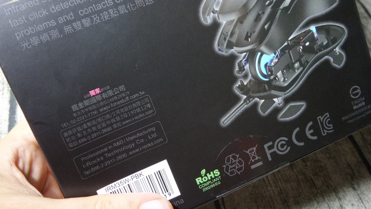 【▼】i-Rocks這款M35滑鼠通過FCC、CE、KCC與歐盟RoHS認證,並授權瘋金剛國際有限公司作為台灣獨家總代理。