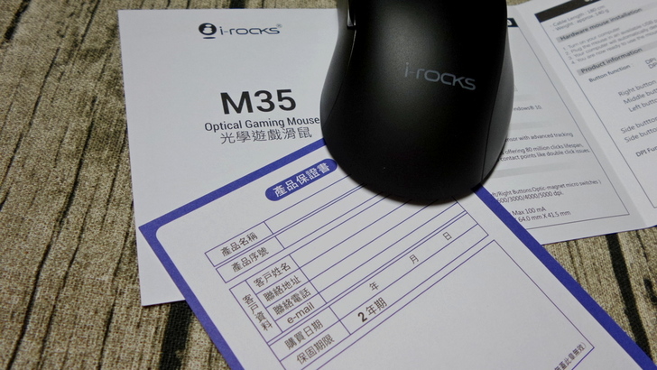 【▼】其實M35本身也是針對遊戲開發出的光學滑鼠,內容物除了M35本體之外,還有使用說明書與產品保證書,其中這款滑鼠保固有兩年唷!