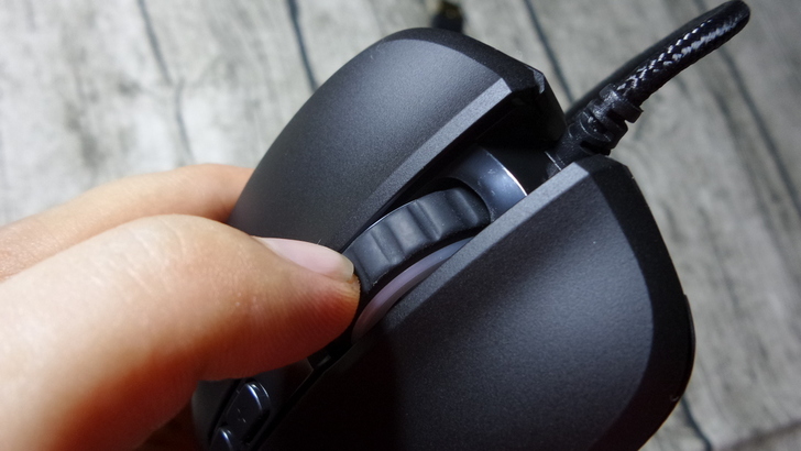 【▼】有別於其他款滑鼠的滾輪是平滑圓體,M35滾輪是橡膠材質,上方有明顯的凹凸紋路,防滑性能佳,滾動時不會左右晃動,能感受到一格一格紋路的阻尼感。運作時滾輪側邊的RGB發光起來也頗具科技感的唷!