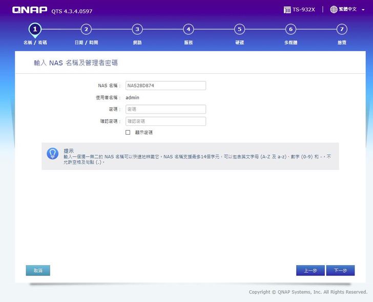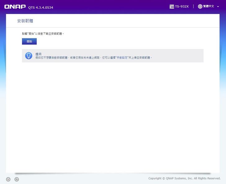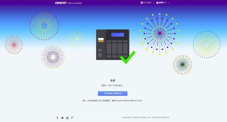 順利開機之後 當然第一次有許多”第一次”要設定~當然以QNAP 累積多年的經驗也打造出讓所有人可以輕鬆上手的OS 【QTS】