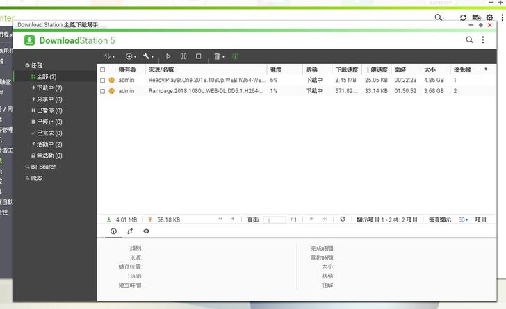 雖然沒有PC端的BT軟體這麼多功能~但是省電省事不占工作電腦資源也就是NAS機的最大優勢了 ~