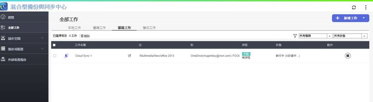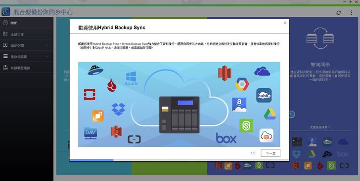 Hybrid Backup Sync是專為QNAP NAS上之檔案所設計的資料備份與災難復原解決方案。它整合了備份、還原、同步功能,可提供您USB單鍵備份、Time Machine備份、RTRR遠端備份(或透過RTRR、Rsync、FTP、CIFS/SMB檔案同步等作法)等超強備份功能,且支援多種主流雲端服務(例如Google Drive™、Microsoft® OneDrive®、Dropbox®、Box®、Yandex® Disk、Amazon® Cloud Drive、Amazon® S3、Amazon® Glacier、Azure™ Storage、Google Cloud Storage™,以及與S3、OpenStack Swift、WebDAV相容的雲端服務)。Hybrid Backup Sync讓您可以預先設定儲存空間、遠端及雲端帳號,可節省您建立備份工作的時間。請注意:您必須在App Center安裝Cloud Backup Sync以遠端連線至雲端服務