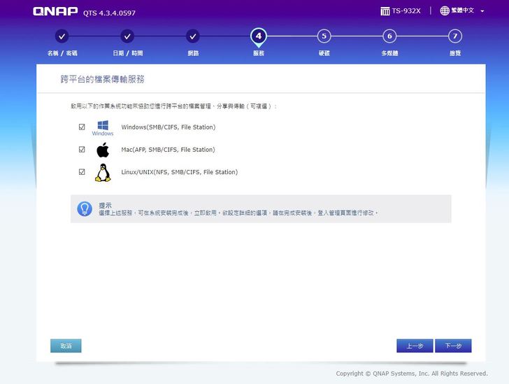 服務的部分~支援了所有主流系統~當然全部勾選免得之後還要安裝套件徒增麻煩