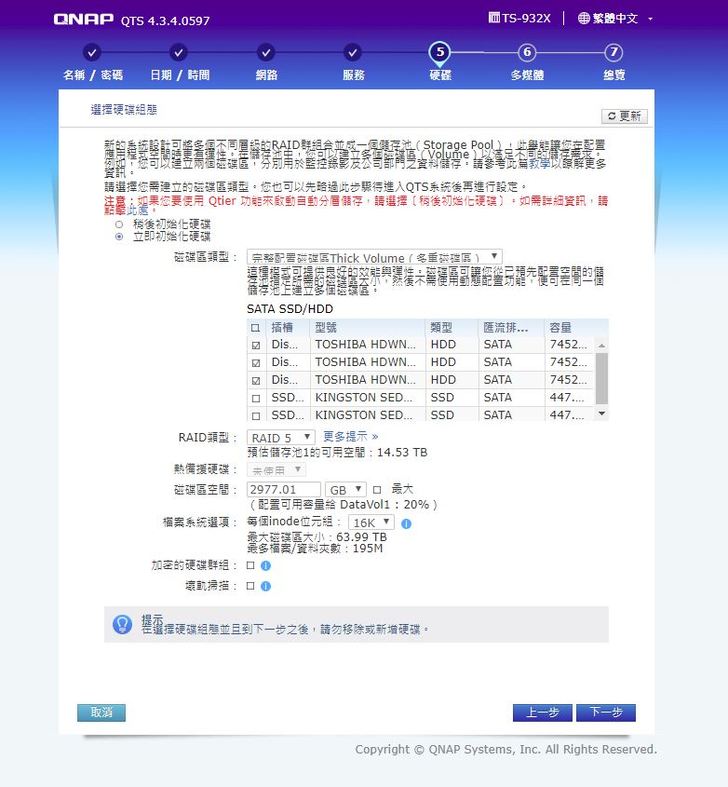 最後一步的設定是會最花時間的~初次使用的新手請要耐心等待~所有nas第一次的組建通常要不少時間~尤其是越大以及越多硬碟越花時間