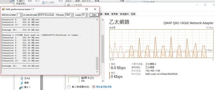 如果手中有更高階的10GbE網卡例如 QNAP 10GbE這張網卡相信速度一定可以衝上3-400 MB/Sec