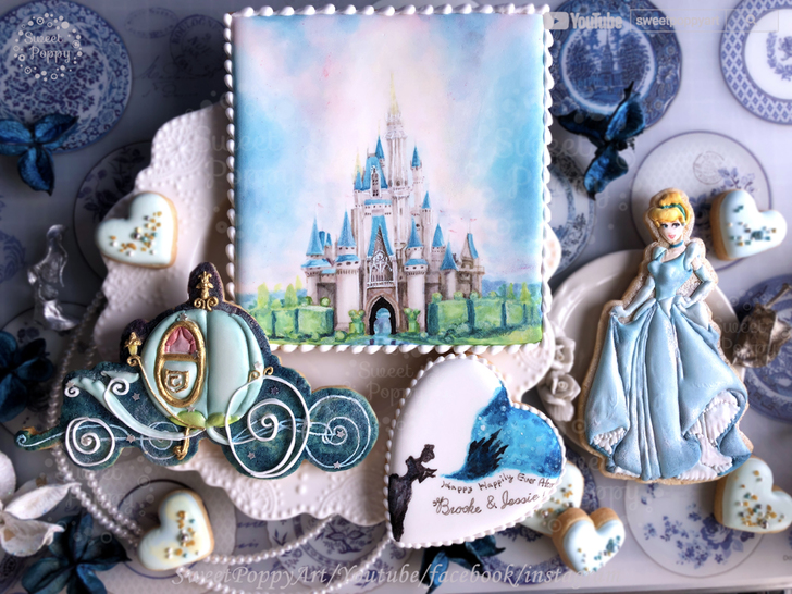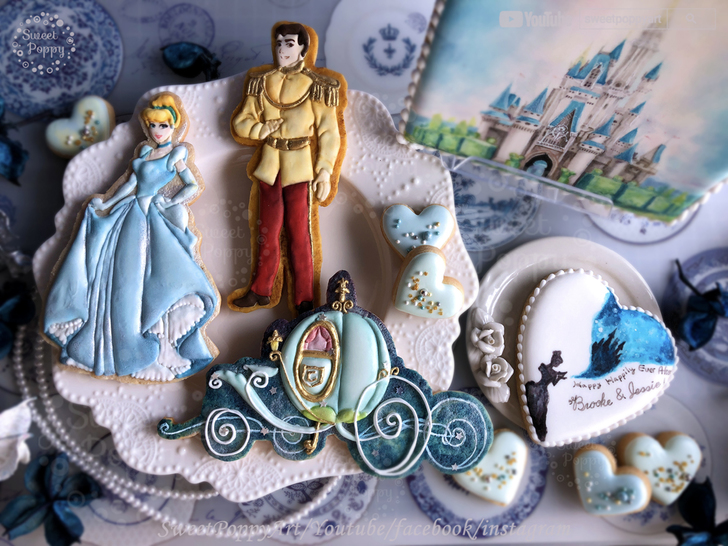 學習如何在餅乾上面畫 灰姑娘仙杜瑞拉-婚禮餅乾 | SweetPoppyArt 甜胖皮藝術糖霜餅乾 | #37 (原創影片)(5P+影)