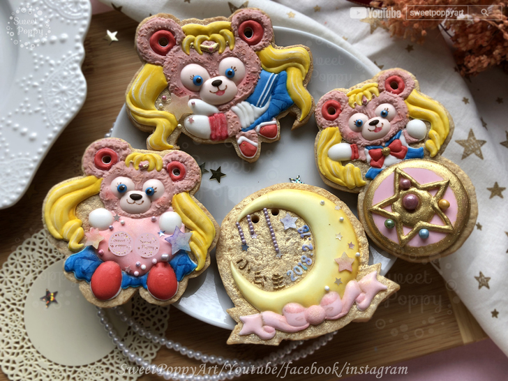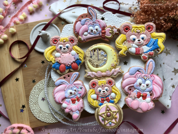 學習如何在餅乾上面畫 美少女戰士×雪莉玫×史黛拉 | SweetPoppyArt 甜胖皮藝術糖霜餅乾 | #36 (原創影片)(3P+影)