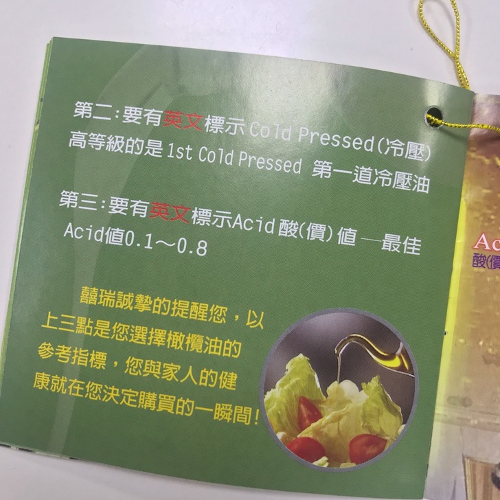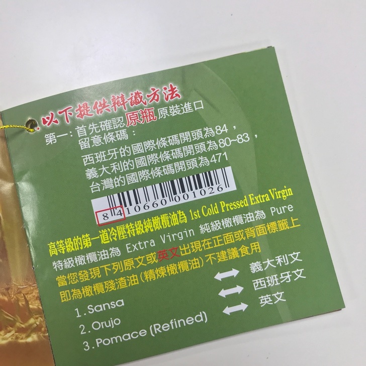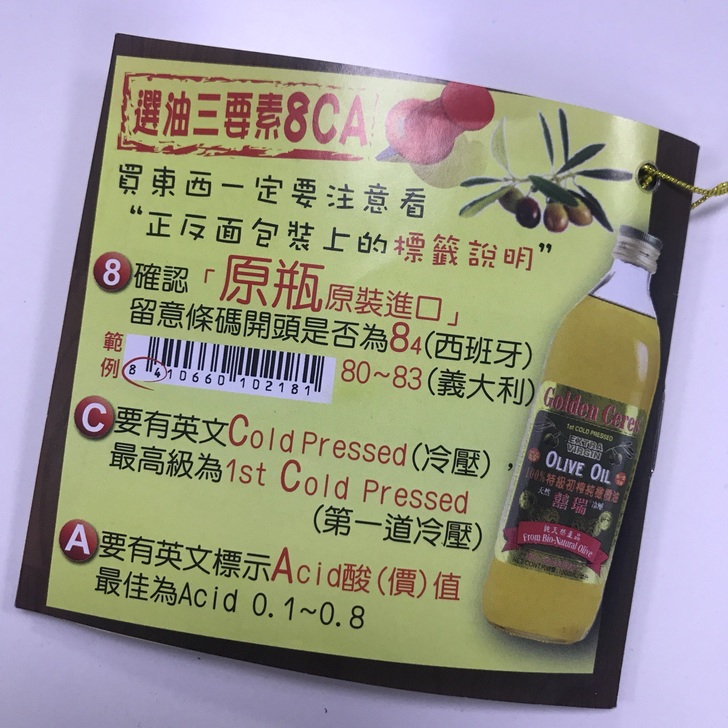 據說出口海關會檢查是否為冷壓油,標示若與內容物不符,會嚴格處分當地的工廠呢