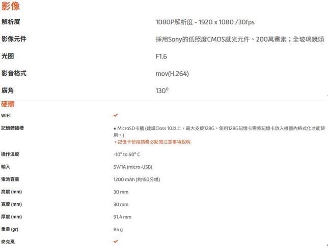 廢話不多說,先來看一下Mio MiVue M733 WIFI 機車行車紀錄器產品規格: