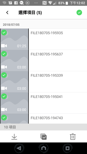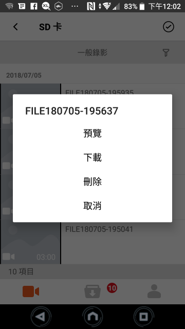 當點選『SD卡』時,則會顯示MiVue M733 目前已錄的影片清單,可以挑選要下載的影片,或是單按某部影片以進行預覽,下載、刪除,或是取消回去等等。