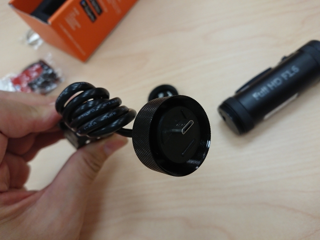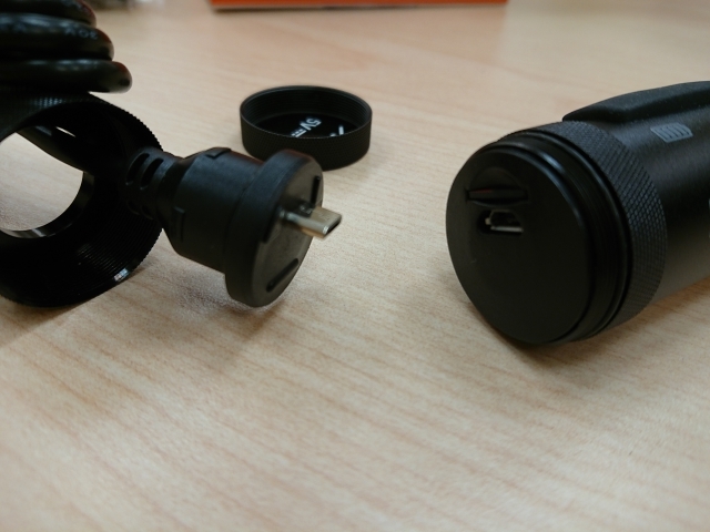 單頭防水車充連接線,需拔掉尾蓋後,插上Micro USB連接孔,然後再將外圈的固定轉環鎖緊,由於之間有防水墊圈,所以不必擔水防水問題,唯一要注意的是連接線尾端為連接行動電源或車用電源USB頭,這端如果接上供電,必須注意防水問題。