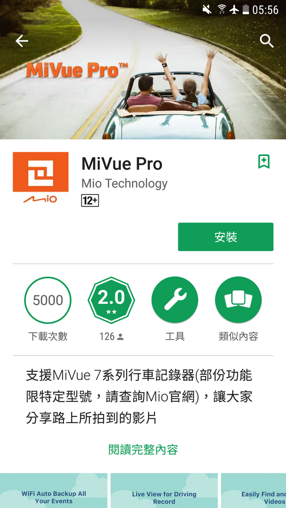 ▼ 搜尋 MiVue Pro 就可以找到及下載。(MiVue 7系列及部份功能特定型號)