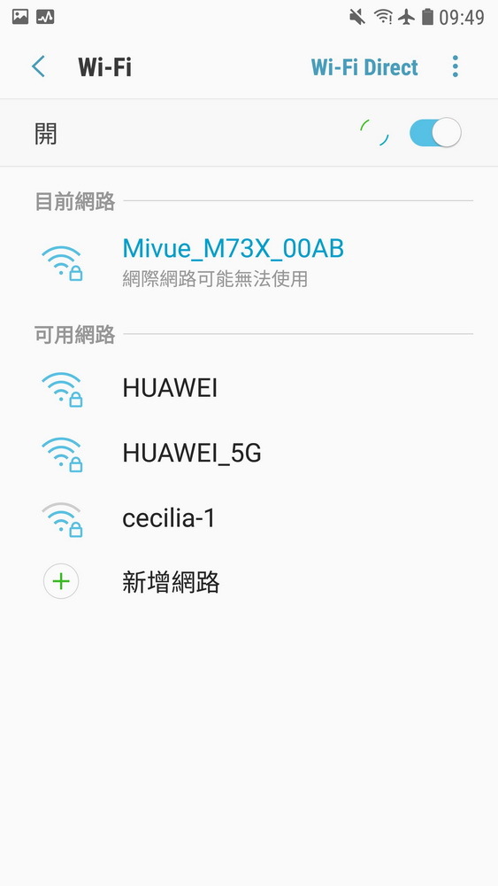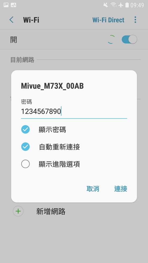 ▼ 手機要開啟 WiFi,才有辦法連接及設定 MiVue™ M733,預設密碼都是 1~0。