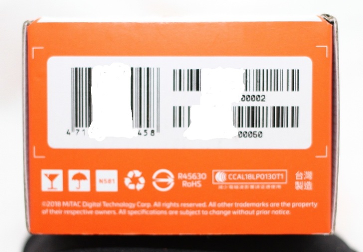 ▼ 盒裝側面及底部:最重要的 台灣製造、通過合格驗證,MiVue™ M733 規格。