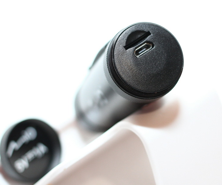 ▼ MiVue™ M733 背面近照:上面為Micro SD記憶卡插槽,下面Micro USB充電孔。