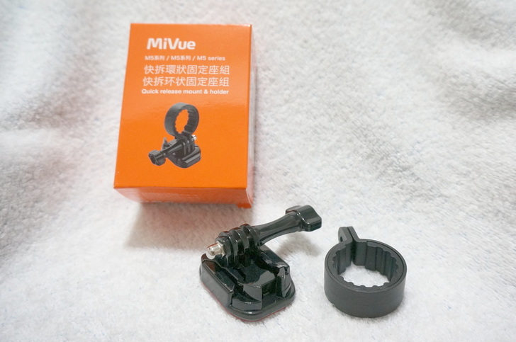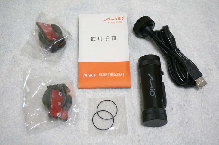 ▲ 盒內的所有配件有:M733主機 / USB防水電力線 / U型固定座*2 / 防水橡圈*2 / 使用手冊