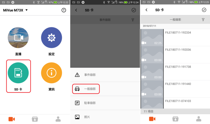 ▲ 點選 [SD卡] 再選擇 [一般錄影],就可以直接預覽M733錄下來的影片了