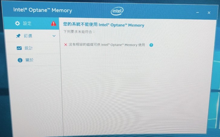 ▲重新灌好WIN 10 64位元 又跑出新的問題沒有相容的磁碟可供Intel® Optane™ Memory使用。
