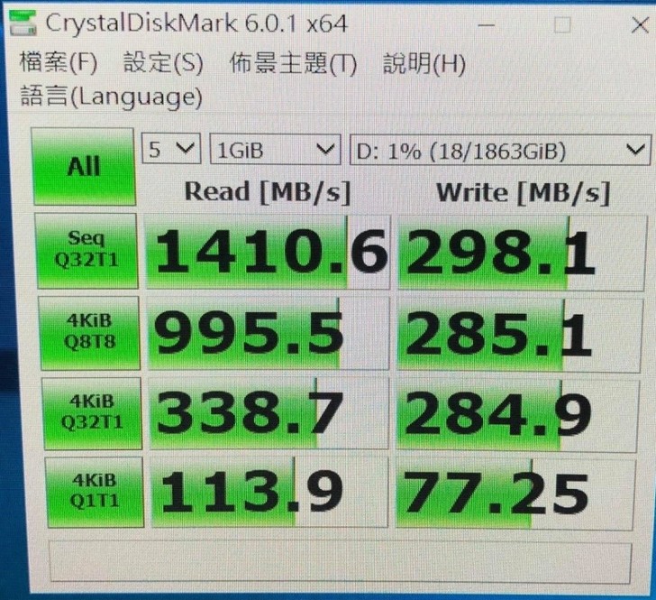 ▲使用Intel® Optane™ Memory加速過後的HDD測試(嚇死人的速度阿!)