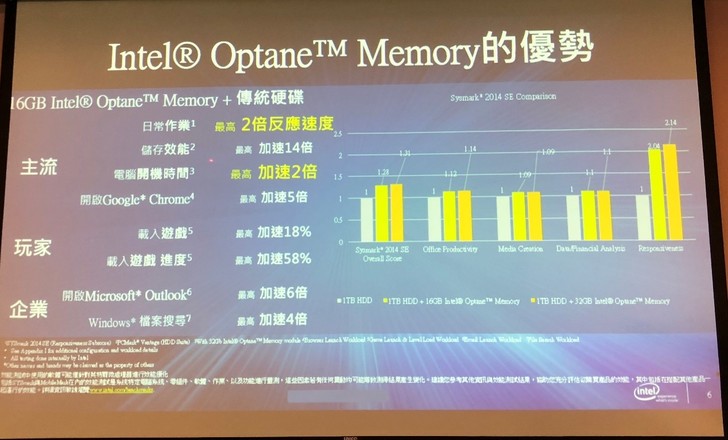 ▲Intel® Optane™ Memory搭配傳統HDD硬碟能加速許多項目。