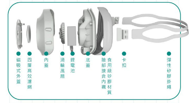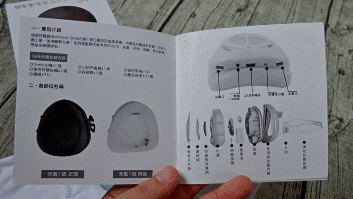 【▼】歡喜體驗之餘也不能忘記來回顧一下BMXrobot Genki元氣口罩型空氣清淨機的結構圖。