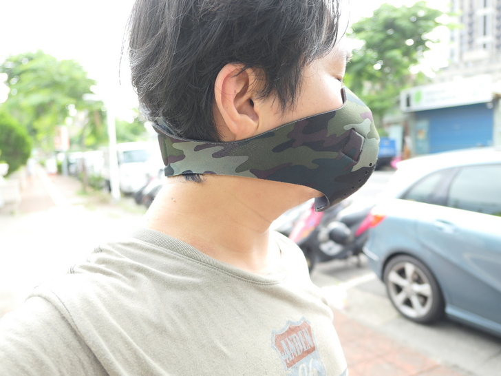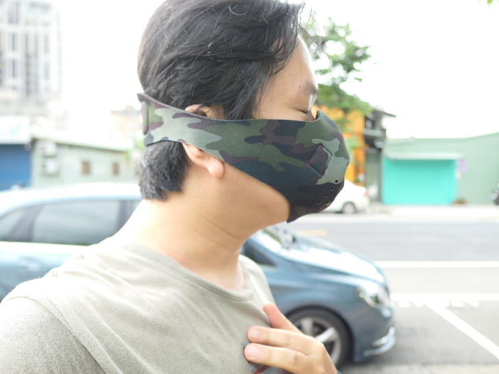 【▼】再來單純戴動感外罩的體驗,戴起來略嫌大,鼻樑上還有一隻手指的空間,不過實際用還會加上BMXrobot Genki元氣口罩型空氣清淨機,單獨戴式沒有阻絕PM2.5的功效。