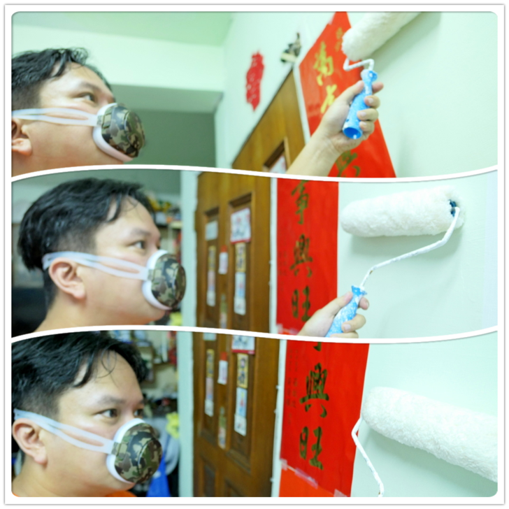 【▼】不二話,一樣戴上【BMXrobot Genki】口罩型空氣清淨機來擦個過癮!(當天小編可是將樓梯間、家中客廳大牆給大力粉刷)