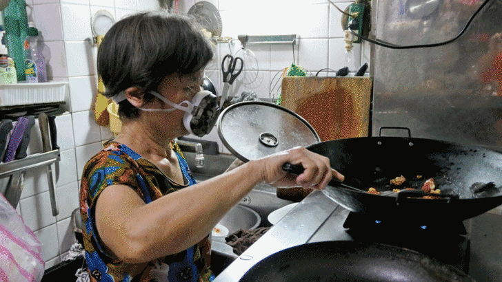 【▼】雖然不建議口罩給其他人使用,不過只要將可拆的矽膠內襯給卸下,稍微用清水搓揉一下,就跟新的沒兩樣呢!小編家人也試著炒菜時使用,油煙雖然還是有,但真的少了很多。不過家人矽膠套繩沒轉正,是錯誤示範,轉正才能貼合皮膚,油煙也更不容易進入囉~
