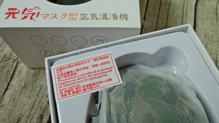 【▼】拆封時刻!由於口罩是屬於衛生用品,所以盒中張貼了中英日韓四國語言 "一經拆封不接受退貨" 的標籤,除非是機器本身的問題。