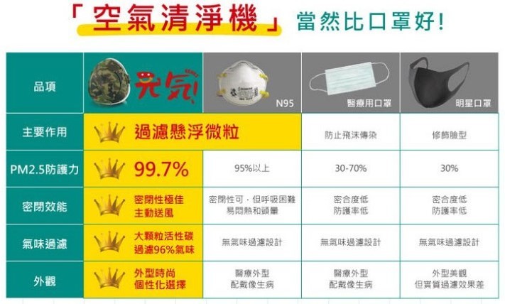 【▼】目前市面上最常用的就是棉質口罩與N95口罩,棉質口罩通風但防護效果差,而N95防護效果強,但戴起來超不舒服,現在唯一的選擇就是中間的【BMXrobot Genki】口罩型空氣清淨機,讓你同時兼具舒適與防護。